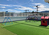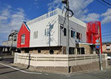園舎赤い螺旋階段が目印、地下1F地上3F建てです。